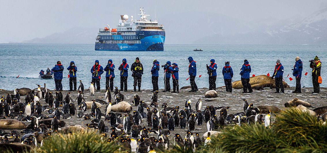 An den Stränden Südgeorgiens tummeln sich Hunderttausende Königspinguine und unzählige antarktische Pelzrobben und südliche See-Elefanten. Winzige Südgeorgien-Pippits gibt es in Hülle und Fülle, Sturmvögel und Albatrosse nisten an den steilen Hängen und kreisen in der Luft darüber. Junge Pelzrobben spielen im Meer und zahlreiche Wal-Arten fressen Krill. Nirgendwo sonst auf der Erde gibt es eine solche Vielfalt an Wildtieren in solch großer Zahl; Südgeorgien ist in vielerlei Hinsicht einzigartig. Ihre Anlandungen werden von Wind und Wellengang bestimmt. Ihr Expeditions-Team und der erfahrene Kapitän wissen genau, wie Sie Ihnen die optimale Erkundung dieser einsamen Gebiete ermöglichen. (FMA)